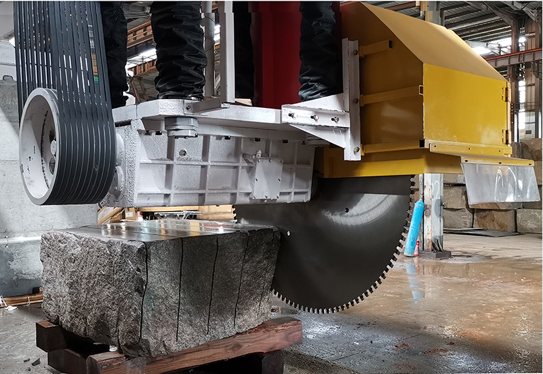石材龍門多片組合鋸,大型荒料切割機(jī),是原石加工成板材的切石設(shè)備。本機(jī)電控采用西門子配置,質(zhì)量穩(wěn)定性好,自動(dòng)化性能高。主軸升降采用6根圓柱做導(dǎo)軌,保證整機(jī)結(jié)構(gòu)穩(wěn)定,升降平穩(wěn)。