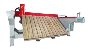 HLSQ-350 配西門子PLC控制器。它可以0-90°旋轉頭和傾斜工作臺,可編程并適用于切割燒結石、粒化石、大理石、石英和其他天然或工程石的板材。
