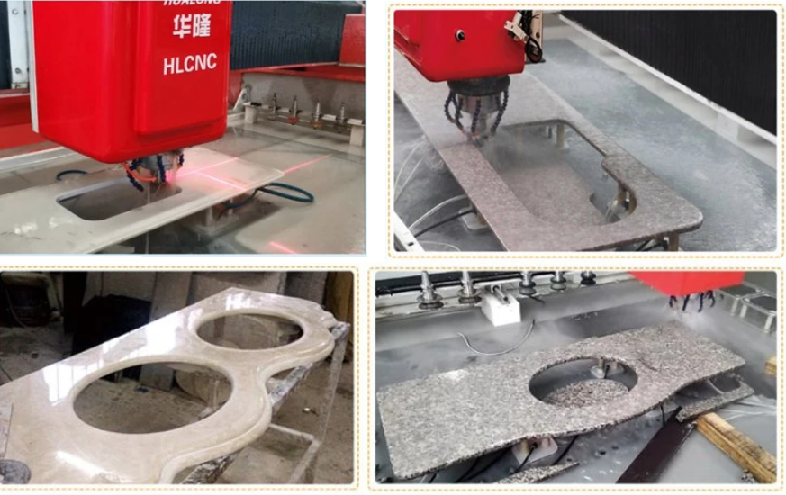 數(shù)控石材加工中心 : 是一個(gè)CNC銑削中心,設(shè)計(jì)用于輪廓加工、切削和車削,具有三個(gè)插補(bǔ)軸,為用戶提供了多種復(fù)雜加工操作的可能性。適用于加工各種石材臺(tái)面,如廚房臺(tái)面、浴室臺(tái)面、櫥柜臺(tái)面、吧臺(tái)、桌子、窗臺(tái)、門套等。浮雕像石頭背景墻浮雕,歐式包邊等也是可用的。